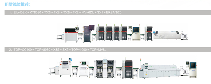 租賃業(yè)務內(nèi)容:貼片機生產(chǎn)線所有設備均提供租賃,可單租,也可整線租賃,維修服務也可通過租賃方式實現(xiàn)。