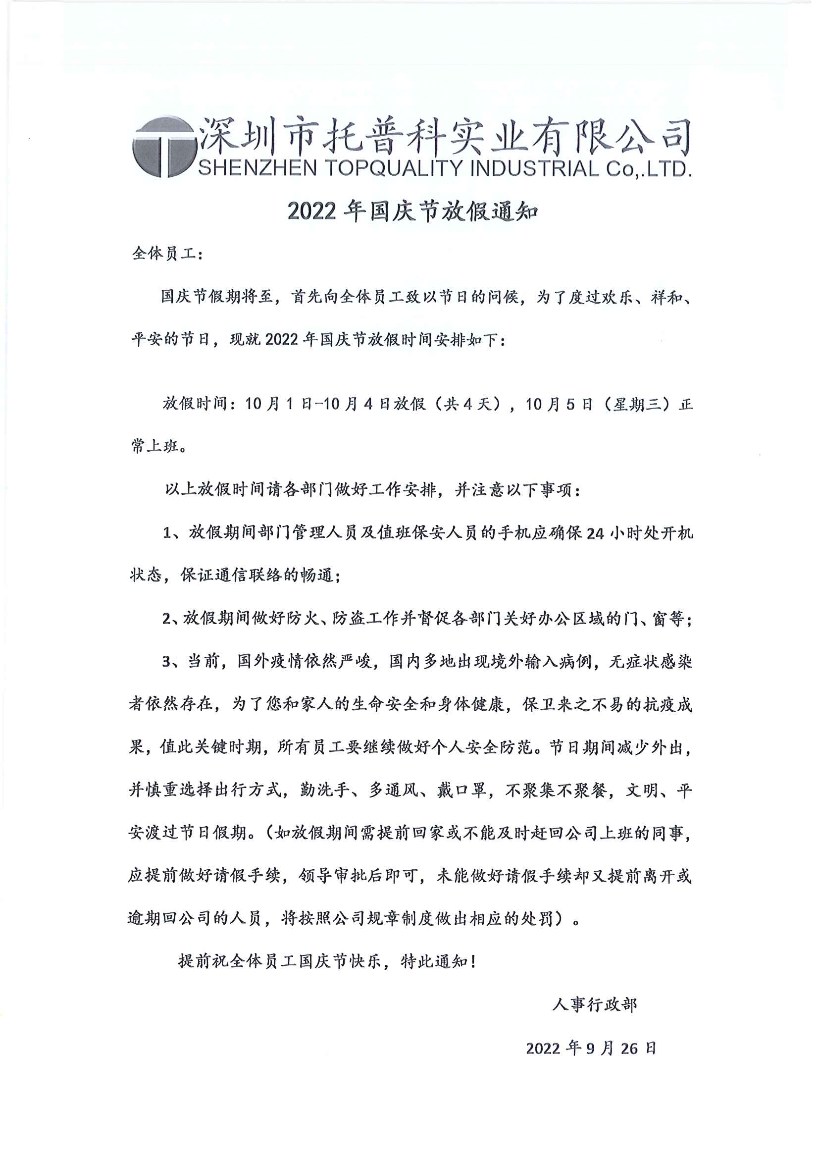 深圳托普科恭祝廣大客戶國慶節快樂。