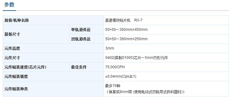 • 元件貼裝速度(最佳條件): 芯片元件75,000 CPH